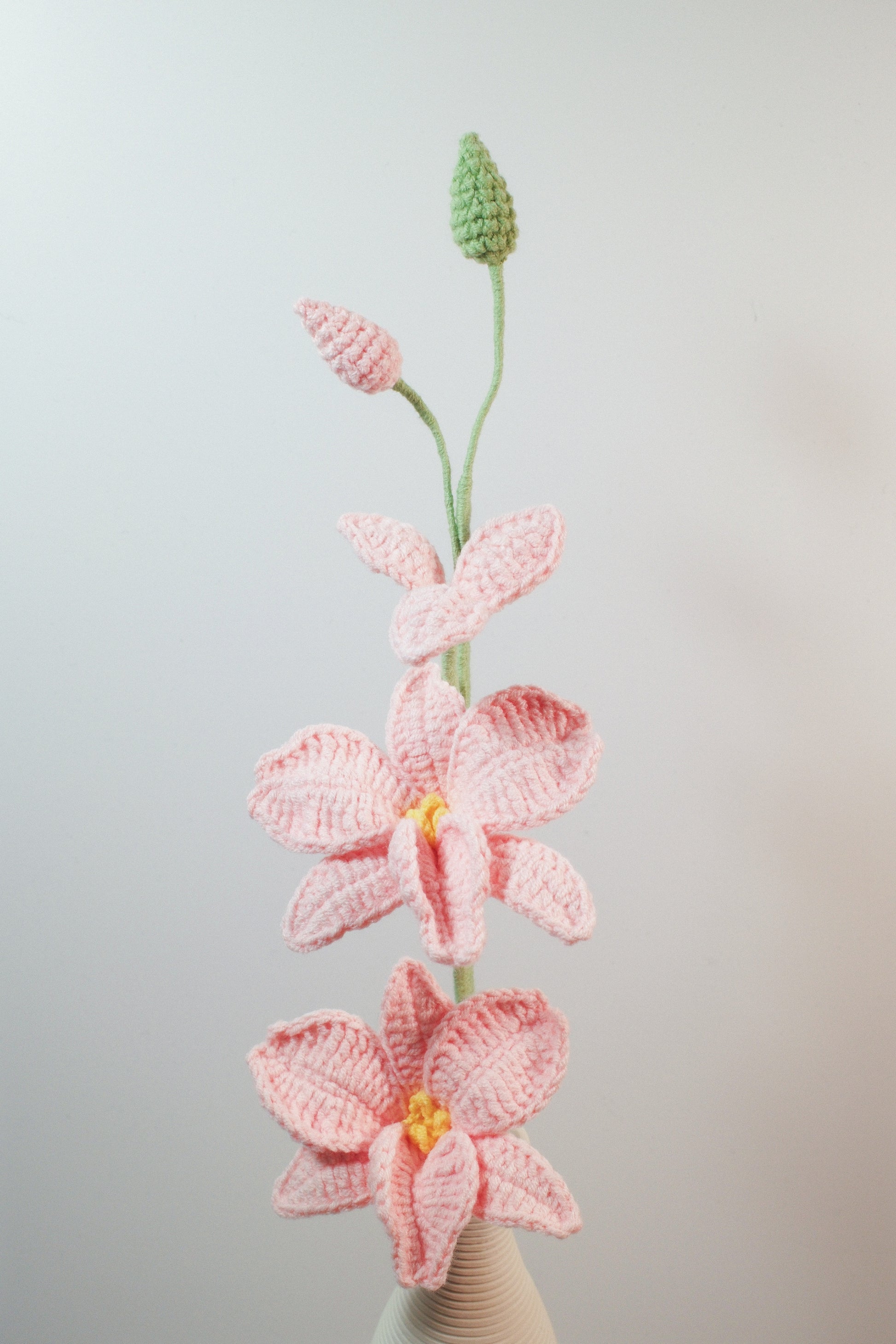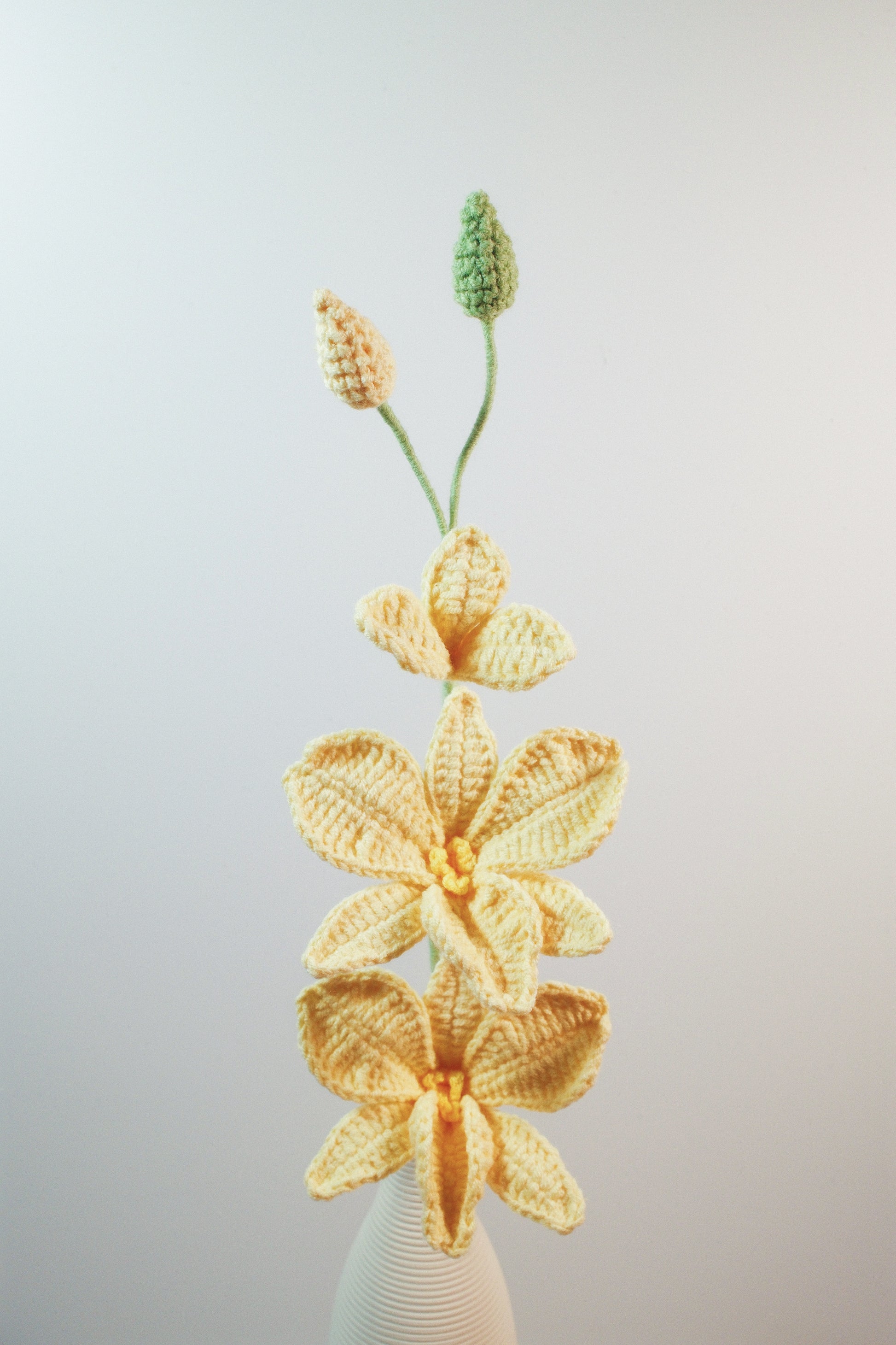 - The flower is handcrafted using a 2.0 mm crochet hook and four-strand yarn.